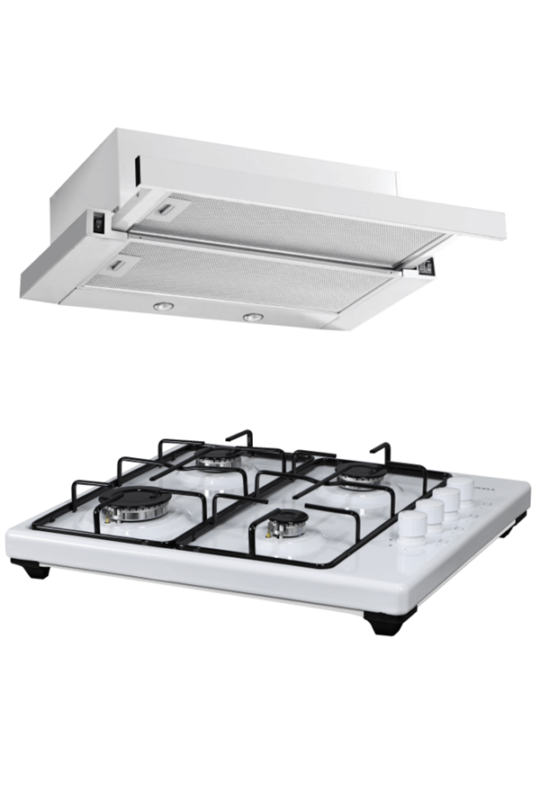 Luxell Beyaz Aspiratörlü Set Üstü Ocaklı Takım, mutfağınızda hem zarif hem de işlevsel bir çözüm sunar.